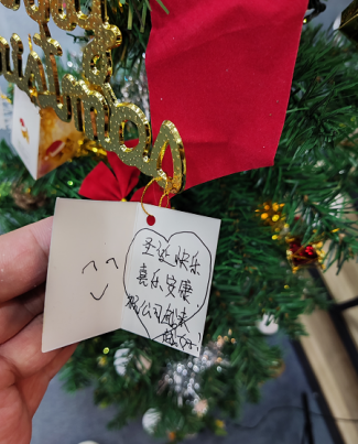 隨后兩名同事穿上圣誕老人的衣服整裝齊發(fā),為公司的每位家人都送去了裝有芳香四溢的蘋果和衷心誠(chéng)摯祝福的“蘋”安袋?!疤O”安袋中還放入了心愿卡,在心愿卡上寫上心愿,公司會(huì)通過隨機(jī)抽取的方式幫助一位同事實(shí)現(xiàn)心愿。