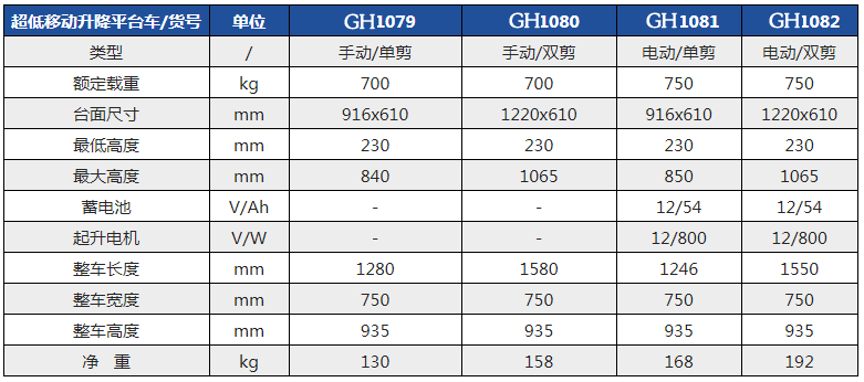 冠航牌超低移動升降平臺車規格型號齊全廠家直供